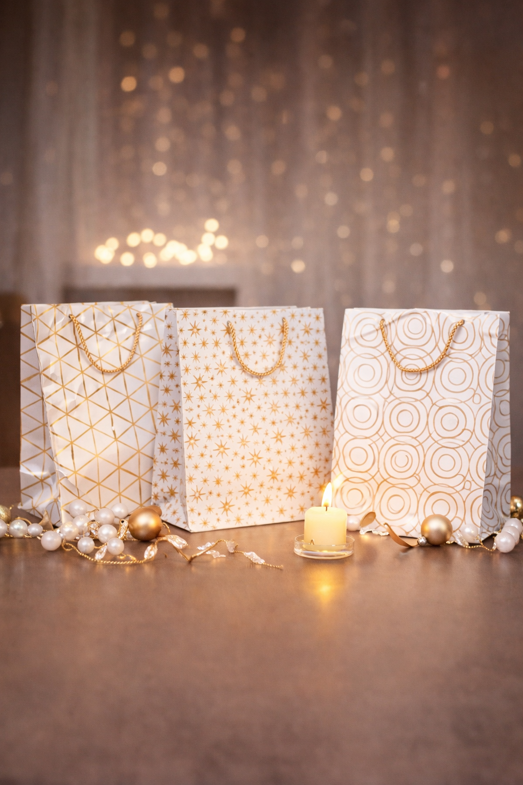 Bolsa de Regalo x12u Blanca c/Figura 18x23x10- Dorado