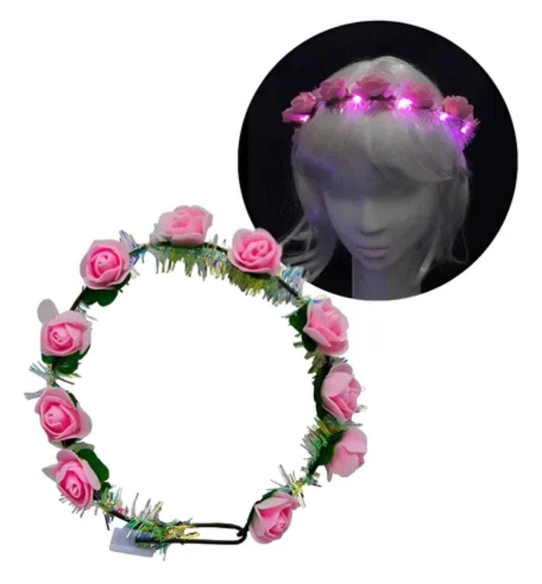 El bulto incluye 10 coronas flores luz blanca. Mínimo de compra 1 bulto.