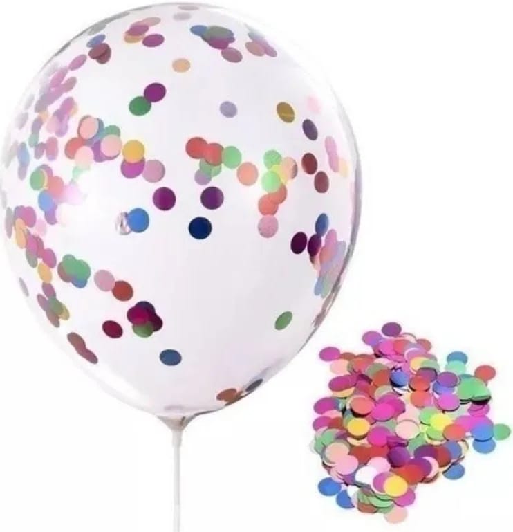 Globo Latex Transparente con Confetti 12″ 30cm x 100u – Multicolor